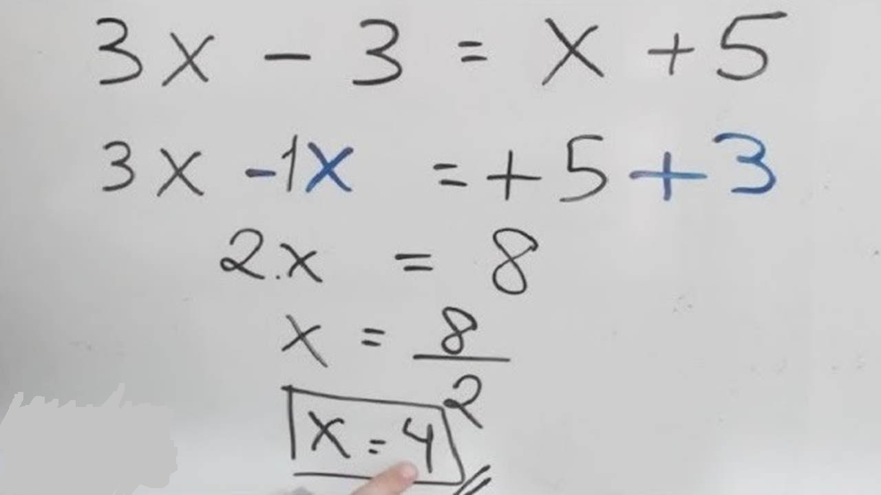 Um aluno resolveu em seu caderno a equação do primeiro abaixo.